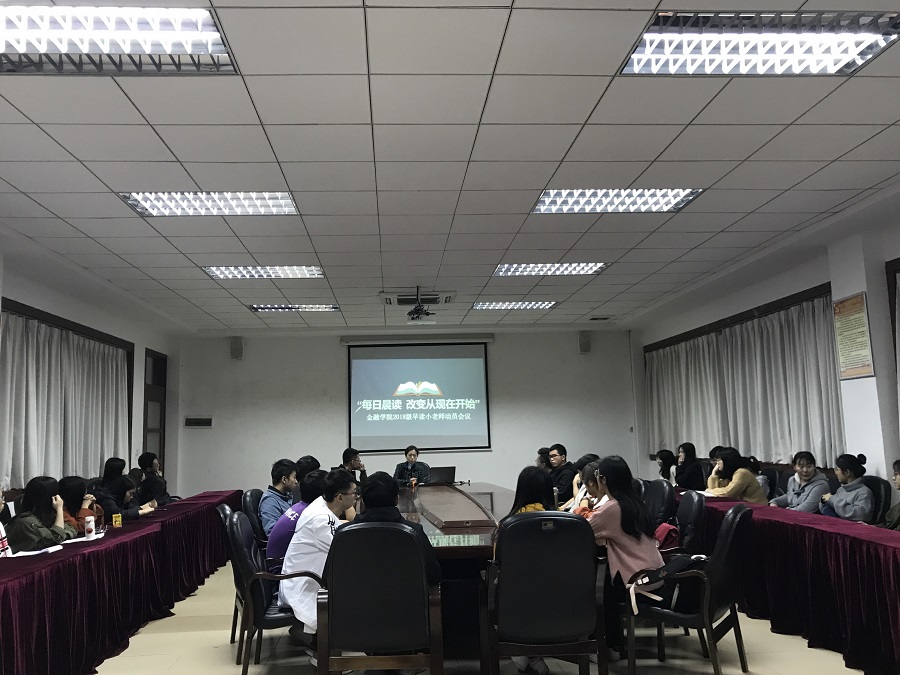 3月1日,金融学院2018级在第二行政楼108会议室召开了2018级“早读小老师”动员大会。金融学院辅导员范英琦、辅导员曾梓恒、18级各班英语优异同学及学委参加了会议。会议由范英琦主持。