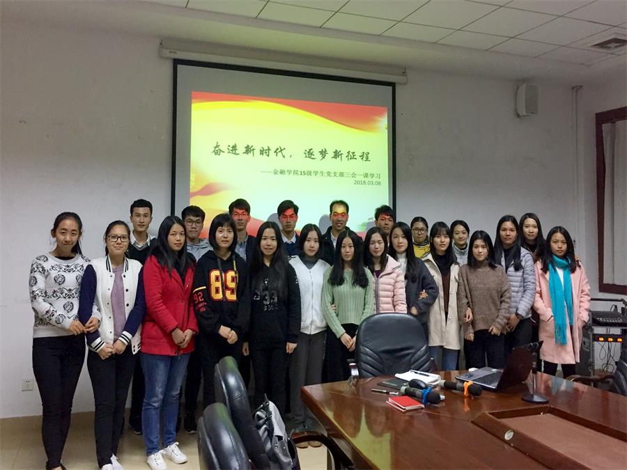 为加强支部党员对时政的了解,提高党员的理论知识,2018年3月8日,金融学院15级员工党支部在二政108召开了新学期金融学院员工党支部“两学一做”理论课学习会议,全体党员出席了本次会议。