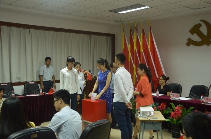 伴随着庄严的国歌,大会正式拉开帷幕。公司党委委员张秋燕首先宣读了公司党委《关于批复同意召开金融公司党总支委员会选举大会的决议》,随后主持人公布通过大会主席团名单,全体到会人员听取《太阳成集团金融公司党总支年度工作报告》以及换届大会选举办法。在全体党员的通力配合下,中国共产党太阳成集团金融学院总支部新一届委员会委员顺利选出,他们分别是张燕、陈德余、张雪梅、陈敬宗、肖营五位同志。